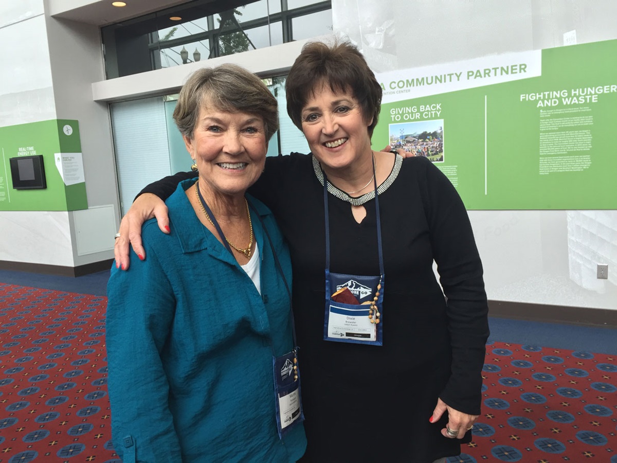 Thompson of the South Carolina Conference arrived at the airport very late at night and rode the MAX light rail to her hotel. En route, she had the chance to introduce herself to fellow lay delegate Dixie Brewster of Milton, Kansas, in the Great Plains Annual Conference, who also had a reservation at Thompson’s hotel.